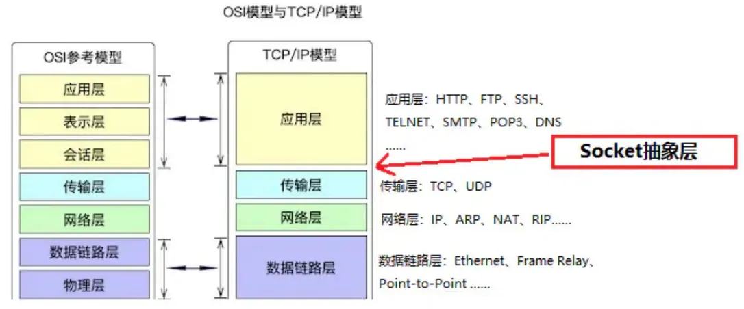 但是,Socket 所支持的协议种类也不光 TCP/IP、UDP,因此两者之间是没有必然联系的。在 Java 环境下,Socket 编程主要是指基于 TCP/IP 协议的网络编程。Socket 偏向于底层。一般很少直接使用 Socket 来编程,框架底层使用 Socket 比较多。