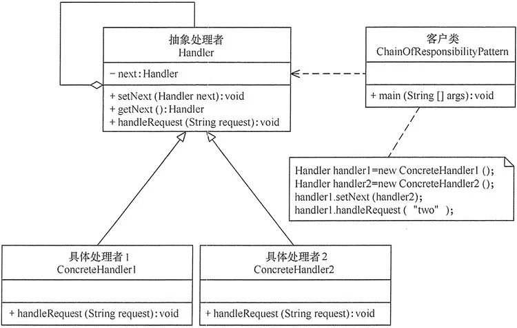 - 抽象处理者(Handler)角色:定义一个处理请求的接口,包含抽象处理方法和一个后继连接。