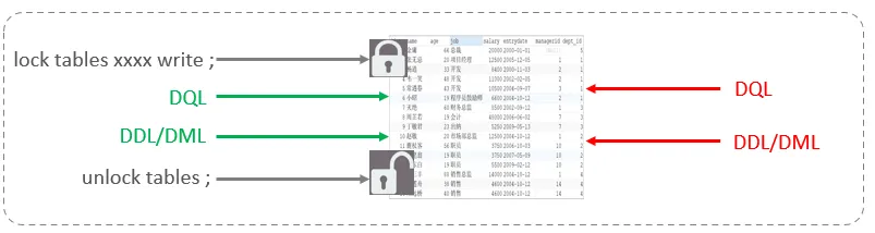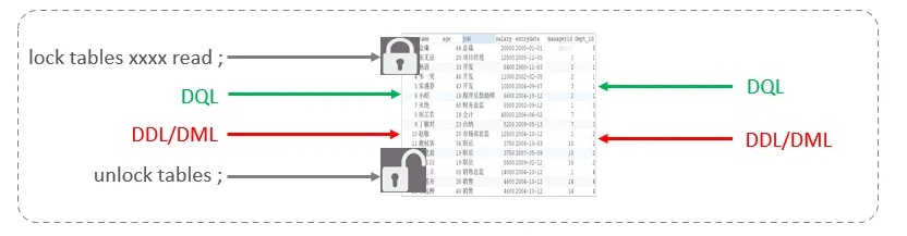 全局锁就是对整个数据库实例(数据库中的所有表)加锁,加锁后整个实例就处于只读状态,后续的 DML 的写语句,DDL 语句,已经更新操作的事务提交语句都将被阻塞。其典型的使用场景是做全库的逻辑备份,对所有的表进行锁定,从而获取一致性视图,保证数据的完整性。