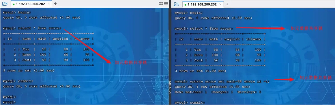 此时,切回会话 1,发现原本阻塞的 SQL 语句执行完成了。