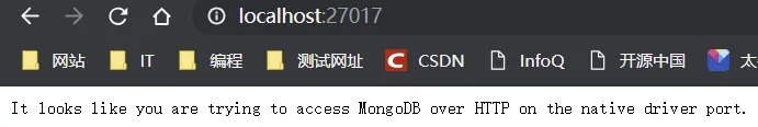 启动 mongodb 服务,命令执行后,浏览器中输入 http://127.0.0.1:27017 看到如下界面即说明启动成功