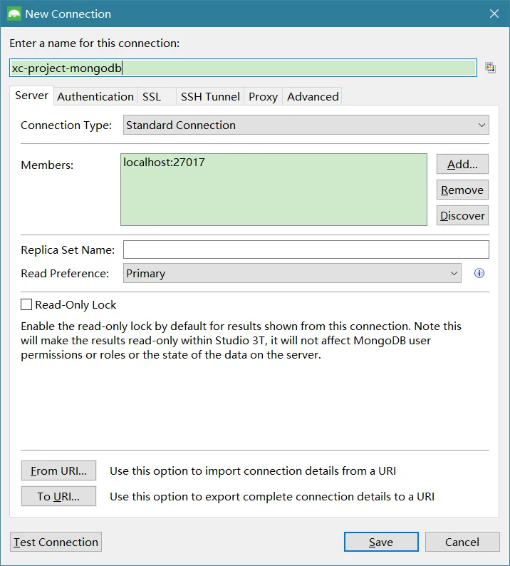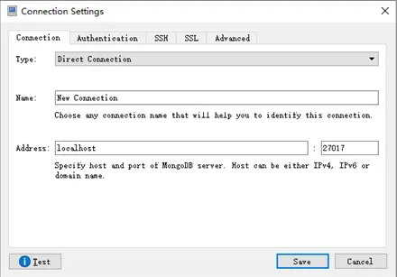 如果输入设置值即可连接(默认不修改即可连接本机 27017 端口)