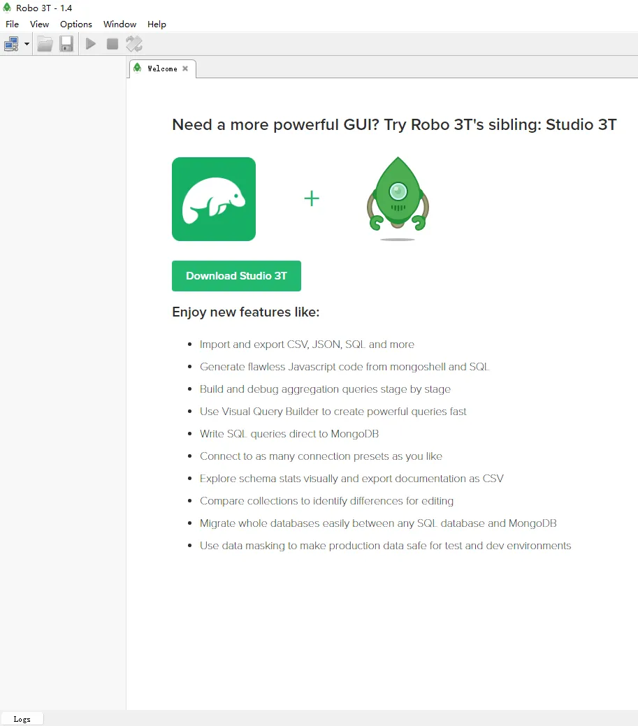 studio3t 是 mongodb 优秀的客户端工具。官方网站:https://studio3t.com/