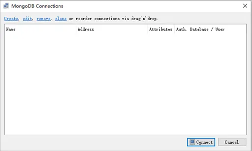 打开软件首先要连接 MongoDB 服务器,选择【File】菜单,选择【Connect…】