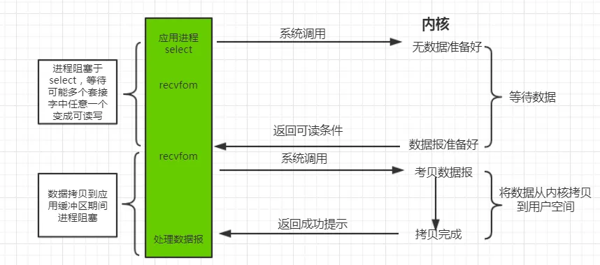因此IO 多路复用的特点是:通过一种机制一个进程能同时等待多个文件描述符,而这些文件描述符(套接字描述符)其中任意一个进入就绪状态,select 函数就可以返回。