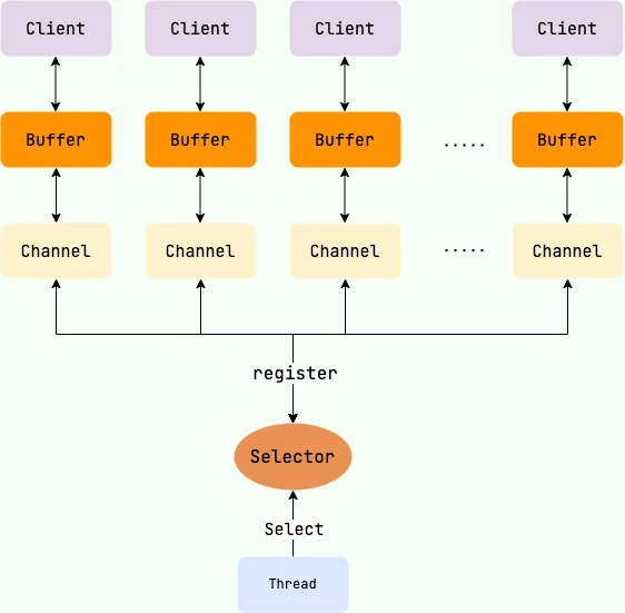 在 Java NIO 中,是通过 selector.select() 去查询每个通道是否有到达事件,如果没有事件,则一直阻塞在那里,因此这种方式会导致用户线程的阻塞。在多路复用 IO 模型中,会有一个线程不断去轮询多个 socket 的状态,只有当 socket 真正有读写事件时,才真正调用实际的 IO 读写操作。