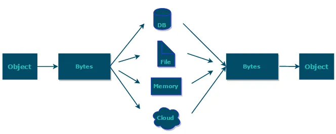 - 序列化对象会将其状态保存为一组字节;反序列化时,再将这些字节组装成对象。
