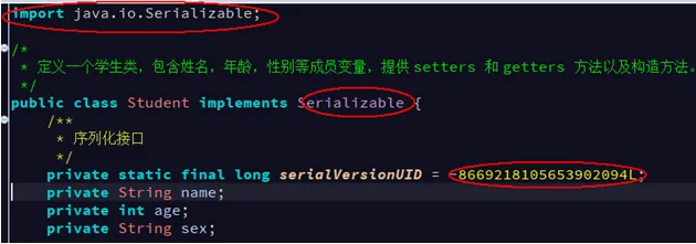 serialVersionUID)不能轻易修改,不然反序列化会失败。 - 类的对象序列化后,类的属性有增加或者删除不会影响序列化,只是值会丢失。