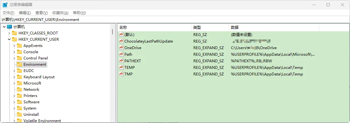 注册表中用户变量所在位置:HKEY_CURRENT_USER\Environment