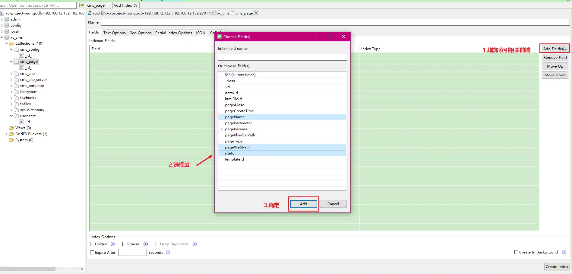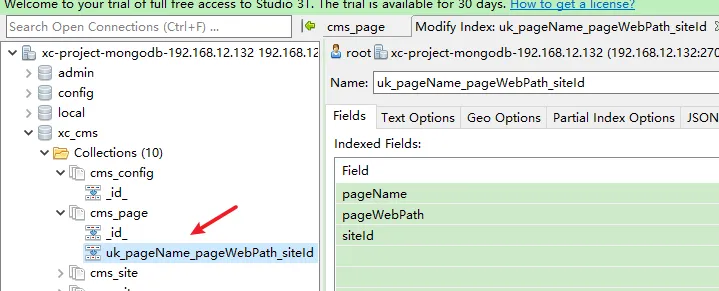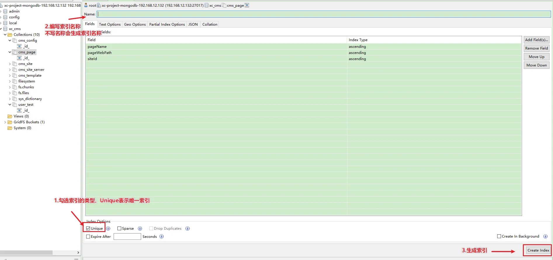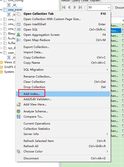 - 右键点击需要增加索引的集合