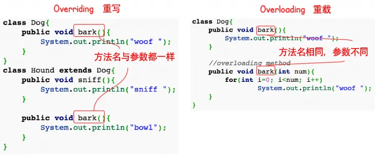 - 方法重写(子类继承父类并重写父类中已有的或抽象的方法)。
