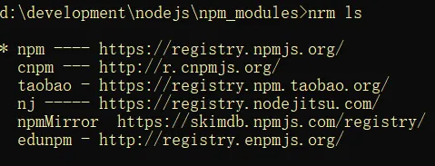 注:如果输入nrm ls提示无此命令,就是是因为nrm没有设置为全局变量,所以需要进入到nrm下载的路径下执行