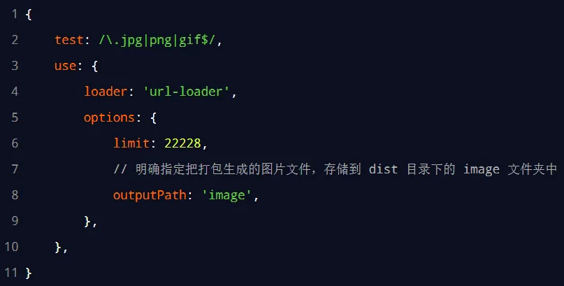 修改 webpack.config.js 中的 url-loader 配置项,新增 outputPath 选项即可指定图片文件的输出路径: