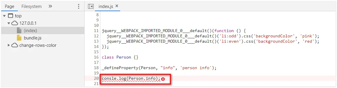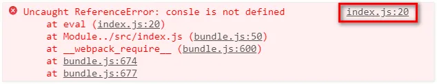 在开发环境下,webpack 默认启用了 Source Map 功能。当程序运行出错时,可以直接在控制台提示错误行的位置,并定位到具体的源代码: