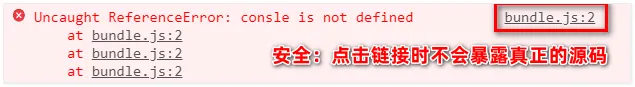 在生产环境下,如果想在定位报错行数的同时,展示具体报错的源码。此时可以将 devtool 的值设置为 source-map。实际效果如图所示: