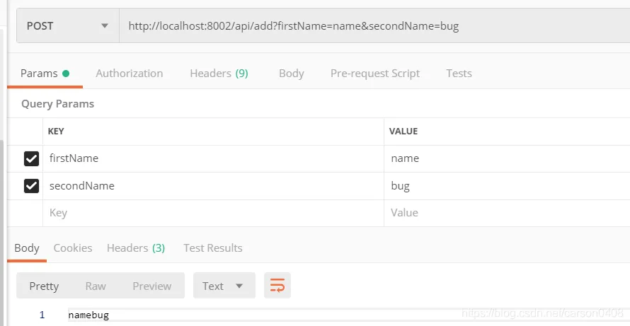 通过postman进行调用接口,如下图所示: